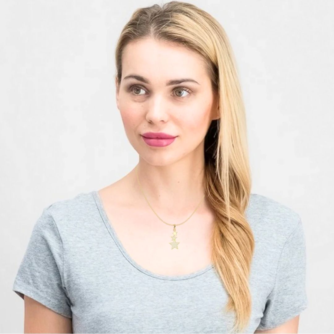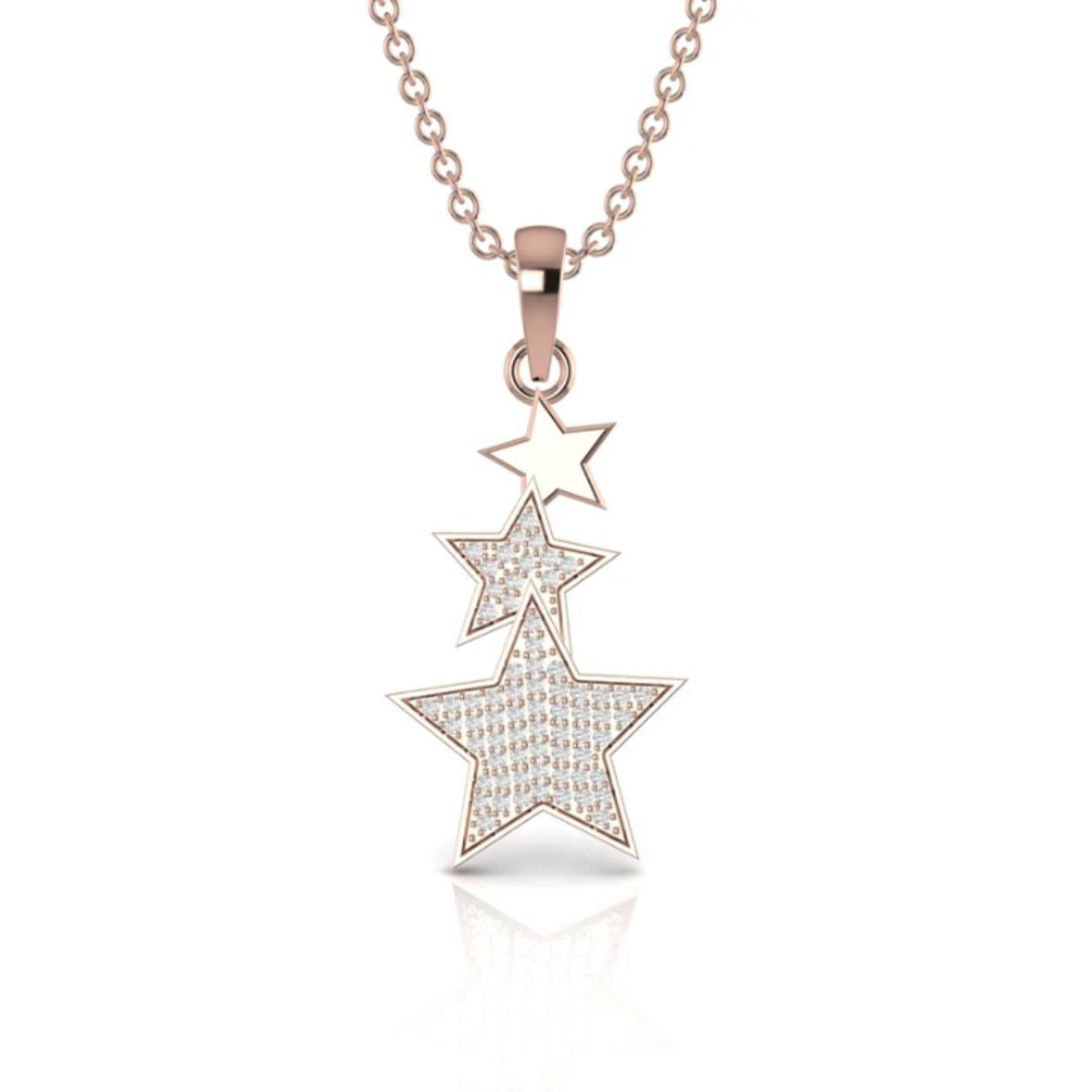 This pendant features a stunning trio of star motifs — each symbolizing dreams, hope, and brilliance — delicately set with shimmering natural diamonds.