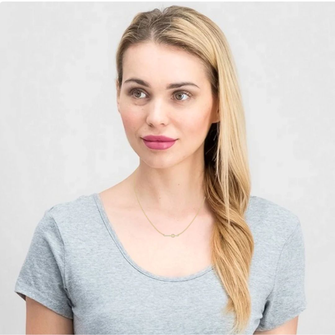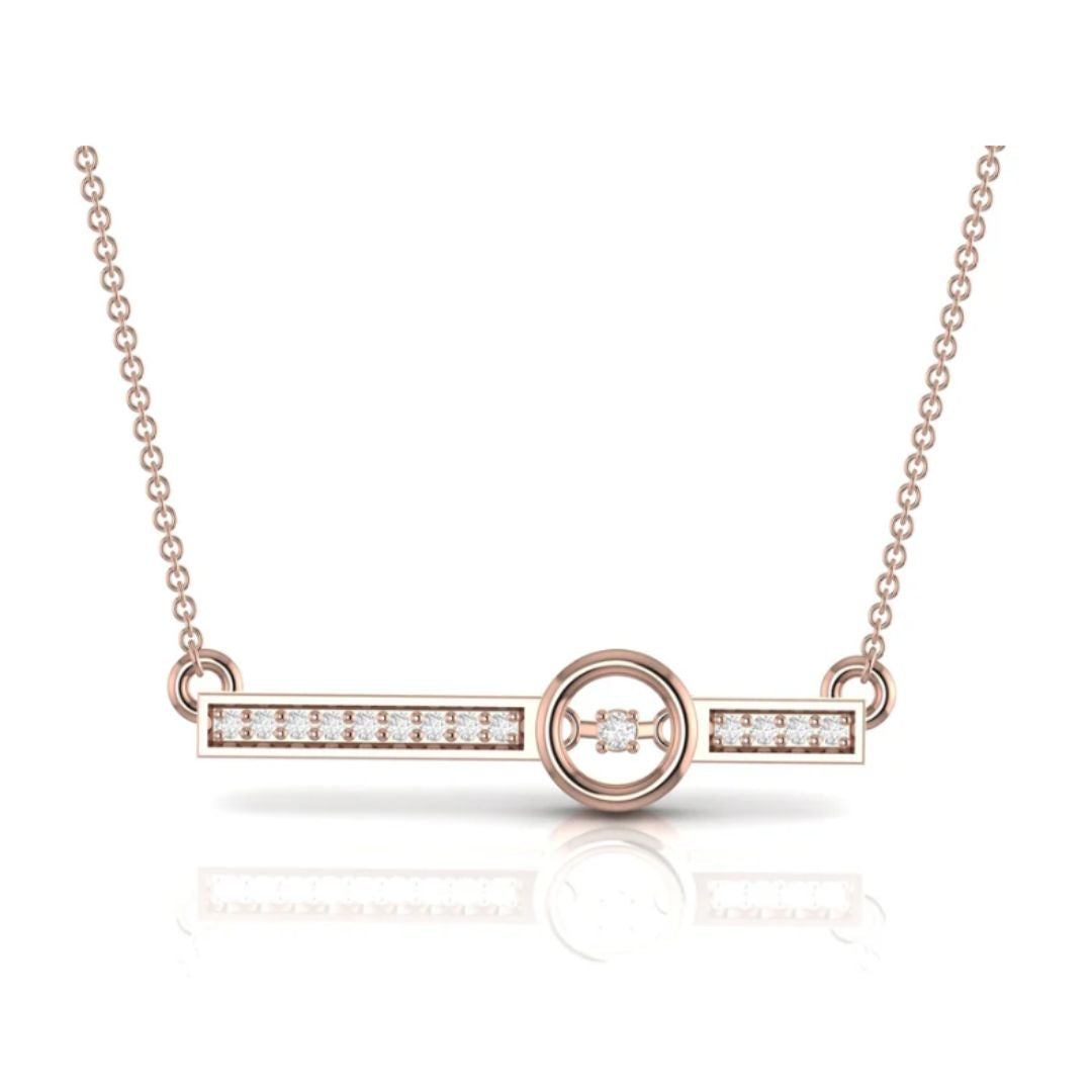 This pendant showcases a sleek bar accent with a central round-diamond circle, symbolizing unity, strength, and sophistication.