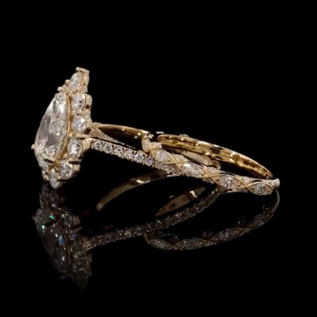 Step into timeless luxury with this exquisite Pear-Cut Lab-Grown Diamond Ring Set by Vinita Jewels β a perfect blend of vintage charm and modern finesse.