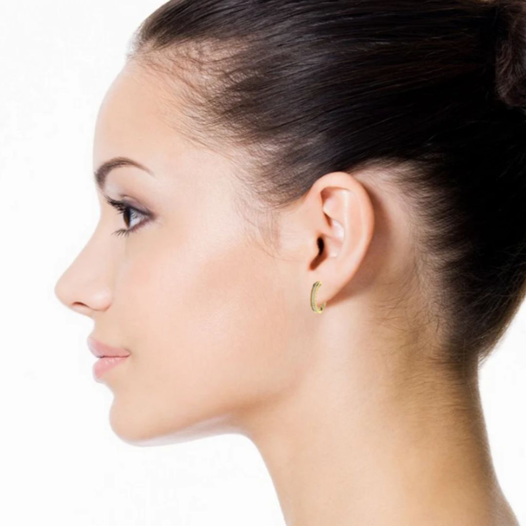 Designed with a distinctive twisted gold frame, each earring is adorned with a line of round brilliant-cut diamonds, offering a refined touch of everyday luxury. The elegant curve hugs the ear beautifully, making it ideal for daily elegance or evening glamour.
