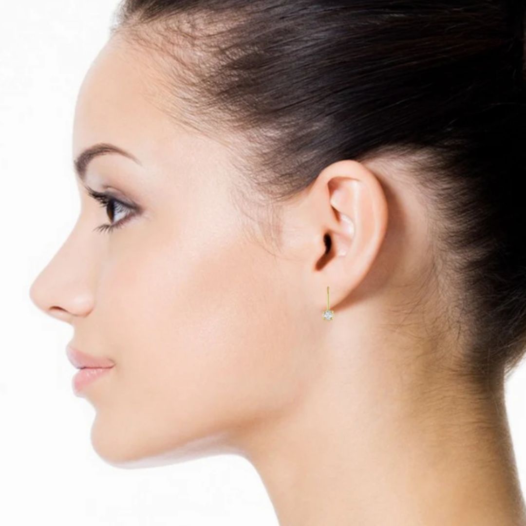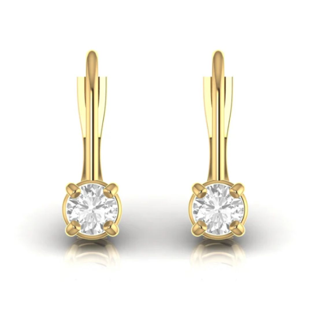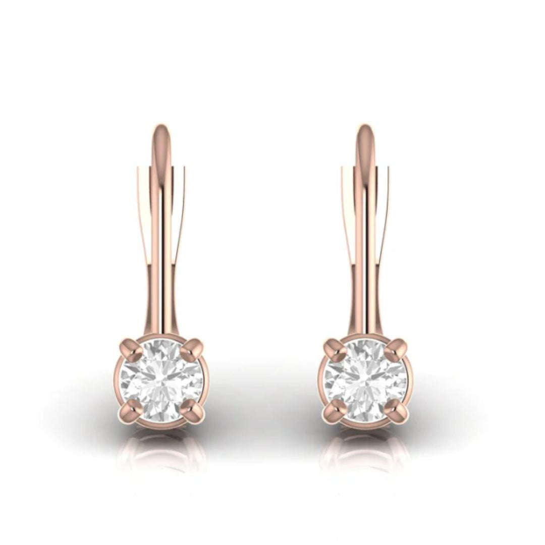 Each earring features a radiant round brilliant-cut diamond set in a sleek four-prong design, offering unmatched brilliance and comfort for everyday wear.